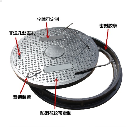 2、不銹鋼緊鎖裝置,可以保障井內(nèi)設施安全和井上行人及車輛的安全。不銹鋼緊鎖使井蓋與底座結合在一起,形成了一個整體。當車輛經(jīng)過時井蓋不會翹起,保證了地面行人及車輛的安全,也保障了井內(nèi)設施的安全。